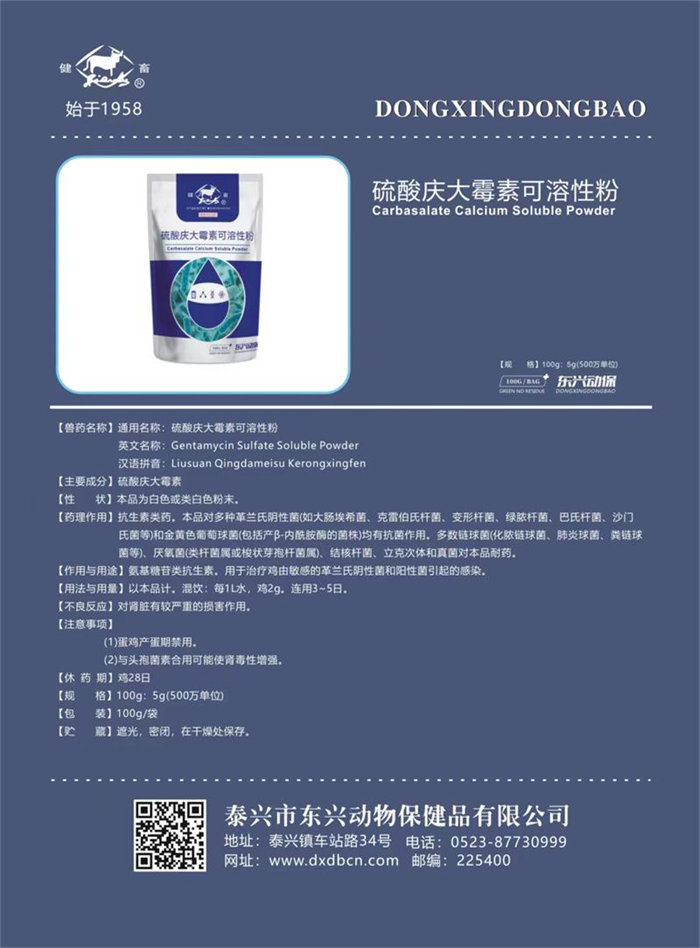 【獸藥名稱】通用名稱:硫酸慶大霉素可溶性粉
